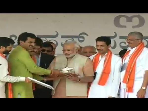 "ನಾನು ನಿಮ್ಮ ಪ್ರೀತಿಯನ್ನು ಮರೆಯುವುದಿಲ್ಲ. ಬಡ್ಡಿ ಸಮೇತ ನಿಮ್ಮ ಪ್ರೀತಿಯನ್ನು ತೀರಿಸುತ್ತೇನೆ" ಎಂದು ಬಿಜೆಪಿ ಪ್ರಧಾನಿ ಅಭ್ಯರ್ಥಿ ಮತ್ತು ಗುಜರಾತ್ ಮುಖ್ಯಮಂತ್ರಿ ನರೇಂದ್ರ ಮೋದಿ ಮಂಗಳವಾರ ದಾವಣಗೆರೆಯಲ್ಲಿ ಜನರಿಗೆ ಭರವಸೆ ನೀಡಿದರು. ನನಗೆ ಕಮಲ ನೀಡಿ ಕಾಂಗ್ರೆಸ್ ಮುಕ್ತ ಭಾರತವನ್ನು ಕಾಣಿರಿ ಎಂದು ಮೋದಿ ಜನರನ್ನು ಬೇಡಿದ್ದರು. ಅಲ್ಲಿಂದ ನೇರವಾಗಿ ಮಂಗಳೂರಿಗೆ ಮೋದಿ ಅವರು ಆಗಮಿಸಿ 'ಧರ್ಮಕ್ಕಿಂತ ದೇಶ ದೊಡ್ಡದು, ದೇಶಕ್ಕಾಗಿ ಮತ ನೀಡಿ' ಎಂದು ಕುಡ್ಲ ಜನತೆಯನ್ನು ಮೋಡಿ ಮಾಡಿದರು.