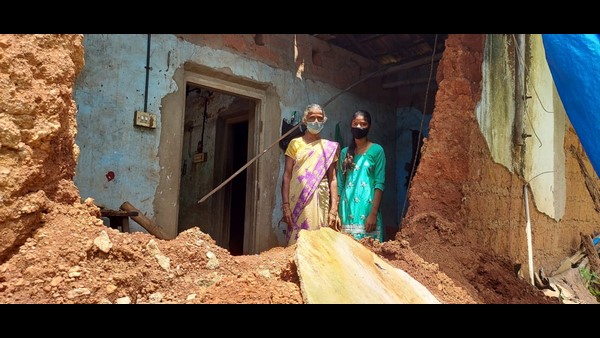 ಭಾರೀ ಮಳೆಯಿಂದಾಗಿ ವಿದ್ಯಾರ್ಥಿನಿ ದೀಕ್ಷಾ ಮನೆಯ ಒಂದು ಭಾಗ ಸಂಪೂರ್ಣ ಕುಸಿದಿದೆ. ಪ್ಲಾಸ್ಟಿಕ್ ಹೊದಿಕೆಯಲ್ಲಿರುವ ಈ ಮನೆಯ ಮೇಲ್ಫಾವಣಿಯೂ ಕುಸಿಯುವ ಭೀತಿಯಲ್ಲಿದೆ. ಆದರೆ ಕುಸಿದ ಮನೆಯನ್ನು ದುರಸ್ತಿ ಮಾಡಲೂ ಹಣವಿಲ್ಲದ ಸ್ಥಿತಿಯಲ್ಲಿ ದೀಕ್ಷಾ ಕುಟುಂಬವಿದೆ.