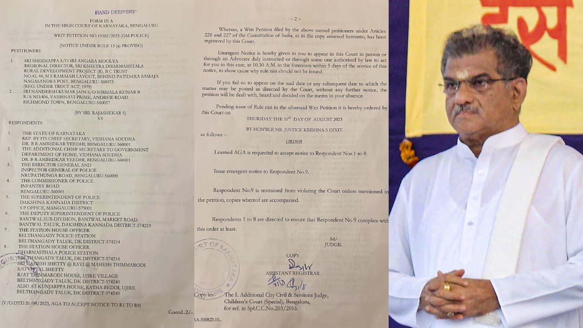 Sowjanya murder: ಧರ್ಮಸ್ಥಳ ಹಾಗೂ ವೀರೇಂದ್ರ ಹೆಗ್ಗಡೆ ಕುಟುಂಬದ ವಿರುದ್ಧ ಅವಹೇಳನಕಾರಿ ಹೇಳಿಕೆ ನೀಡದಂತೆ ಹೈಕೋರ್ಟ್ ಆದೇಶ