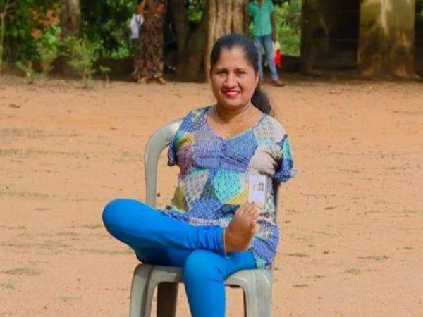ಎರಡು ಕೈಗಳಿಲ್ಲದಿದ್ದರೂ ಕಾಲಿನಲ್ಲಿ ಮತ ಚಲಾಯಿಸಿ ಮಾದರಿಯಾದ ಬೆಳ್ತಂಗಡಿ ಮಹಿಳೆ