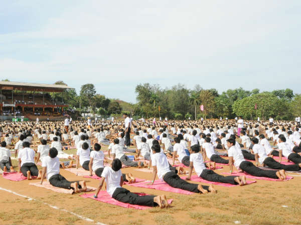 ಉಜಿರೆಯ ರತ್ನವರ್ಮ ಹೆಗ್ಗಡೆ ಕ್ರೀಡಾಂಗಣದಲ್ಲಿ ಬೆಳ್ತಂಗಡಿ ತಾಲ್ಲೂಕಿನ 2960 ಶಾಲಾ ವಿದ್ಯಾರ್ಥಿಗಳು ಯೋಗ ಪ್ರದರ್ಶನ ನೀಡಿದರು.