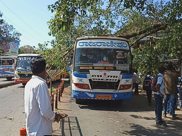 ಪ್ರತಿದಿನ ನೂರಾರು ಮಂದಿ ಬಸ್ಸಿಗಾಗಿ ಕಾಯುವ ಜಾಗ, ನಗರದ ಜನನಿಬಿಡ ಹಂಪನಕಟ್ಟೆಯಲ್ಲಿ ಘಟನೆ ನಡೆದಿದ್ದು, ಅಲ್ಲೇ ಇದ್ದ ಅಶ್ವತ್ಥ ಮರದಿಂದ ಭಾರೀ ಗಾತ್ರದ ರೆಂಬೆ ಏಕಾಏಕಿ ಮುರಿದು ಬಿದ್ದಿದೆ. ಮಂಗಳೂರಿನಿಂದ ಕಿನ್ನಿಗೋಳಿ ಕಡೆ ತೆರಳುತ್ತಿದ್ದ ಖಾಸಗಿ ಬಸ್ಸು ಬಂದು ನಿಂತಾಕ್ಷಣ ಮರದ ರೆಂಬೆ ಕಡಿದು ಬಿದ್ದಿದೆ.