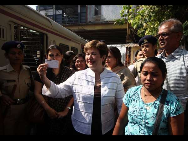 ಭಾರತ ಪ್ರವಾಸದಲ್ಲಿರುವ ವಿಶ್ವ ಬ್ಯಾಂಕ್ ಮುಖ್ಯ ಕಾರ್ಯ ನಿರ್ವಹಣಾಧಿಕಾರಿ ಕ್ರಿಸ್ಟಾಲಿನಾ ಜಾರ್ಜಿಯೆವಾ ಮಂಗಳವಾರ ಮುಂಬೈನ ಸ್ಥಳೀಯ ರೈಲಿನಲ್ಲಿ ಪ್ರಯಾಣ ಬೆಳೆಸಿದ್ದಾರೆ.