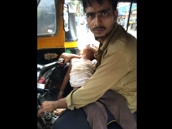 ಪಾರ್ಶ್ವವಾಯು ಪೀಡಿತ ಪತ್ನಿಗೆ ಮಗುವನ್ನು ನೋಡಿಕೊಳ್ಳೋದಕ್ಕೆ ಸಾಧ್ಯವಿಲ್ಲ. ಪತ್ನಿ-ಮಗುವನ್ನು ನೋಡಿಕೊಂಡು ಮೊಹಮ್ಮದ್ ಸಯ್ಯದ್ ಮನೆಯಲ್ಲೇ ಉಳಿದರೆ ತುತ್ತಿನ ಚೀಲ ತುಂಬುವುದು ಹೇಗೆ? ಅದಕ್ಕೆಂದೇ ಮಗುವನ್ನು ತೊಡೆಯ ಮೇಲೇ ಕೂರಿಸಿಕೊಂಡು ಈತ ಆಟೋ ಓಡಿಸುತ್ತಾನೆ![ಬೈಕ್ ನಲ್ಲಿ ಮಗುವಿನ ಶವವನ್ನು ತೆಗೆದುಕೊಂಡು ಹೋದ ಅಸಹಾಯಕ ತಂದೆ]