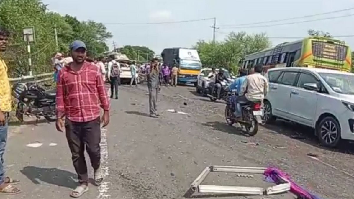Shocking visuals of the accident that claimed ten lives near Kuruburu village in T Narasipur taluk of #Mysuru on Monday. All 10 hailing from Ballari died in a head-on collision between Innova car and a private bus.@XpressBengaluru @santwana99 @ramupatil_TNIE @Cloudnirad pic.twitter.com/z33QPBP3oZ