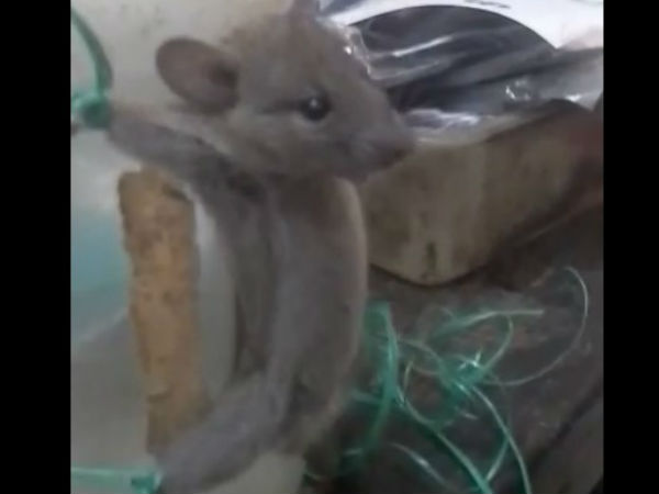 ಇಲಿಯನ್ನು ಜೀವಂತವಾಗಿ ಹಿಡಿದಿರುವ ಆತ, ಅದರ ಕೈ ಕಾಲುಗಳನ್ನು ಅಗಲಿಸಿ ಬಾಟಲಿಯೊಂದಕ್ಕೆ ಕಟ್ಟಿ ಹಾಕಿದ್ದಲ್ಲದೆ, ಪೊರಕೆ ಕಡ್ಡಿಯಿಂದ ಕೊಂಚ ಹೊಡೆದಿದ್ದಾನೆ.