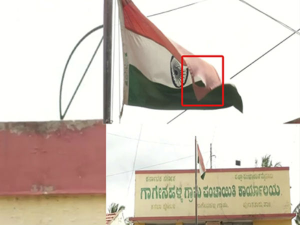 ಮೈಸೂರು ಜಿಲ್ಲೆ ಹುಣಸೂರು ತಾಲೂಕಿನ ಗಾಗೇನಹಳ್ಳಿ ಗ್ರಾಮ ಪಂಚಾಯತಿ ಕಚೇರಿ ಮುಂಭಾಗ ಕಳೆದ 15 ದಿನಗಳಿಂದ ಸತತವಾಗಿ ಹರಿದು ಹೋಗಿರುವ ತ್ರಿವರ್ಣ ಧ್ವಜವನ್ನೇ ಹಾರಿಸಲಾಗುತ್ತಿದೆ. ರಾಷ್ಟ್ರ ಧ್ವಜಕ್ಕೆ ಆಗುತ್ತಿರುವ ಅವಮಾನದ ಬಗ್ಗೆ ಗ್ರಾಮಸ್ಥರು, ಪಂಚಾಯಿತಿ ಅಧಿಕಾರಿಗಳ ಗಮನಕ್ಕೆ ತಂದರೂ ಸರಿಪಡಿಸುವ ಗೋಜಿಗೆ ಹೋಗಿಲ್ಲ.