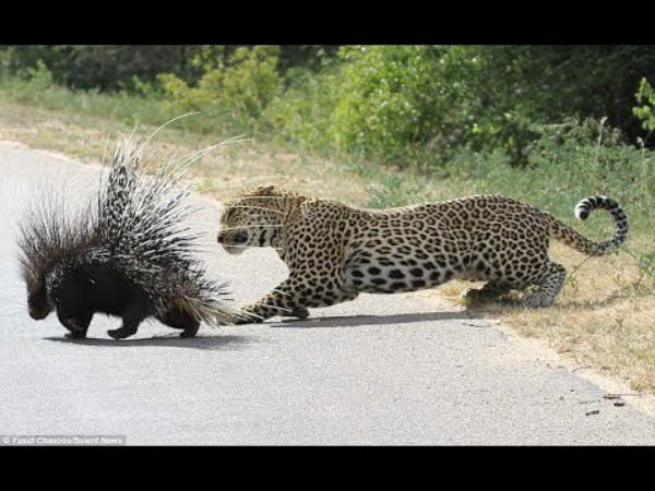 ರೇಸ್ ಕೋರ್ಸ್ ಹಿಂಬದಿಯ ರಸ್ತೆಯಲ್ಲಿ ಸಾಗುತ್ತಿದ್ದ ಕಾರೊಂದಕ್ಕೆ ಚಿರತೆ ಒಂದು ಅಡ್ಡ ಬರುತ್ತದೆ. ಸ್ವಲ್ಪ ದೂರ ಹೆಜ್ಜೆ ಹಾಕುತ್ತ ಒಂದು ಬದಿಯಿಂದ ಮತ್ತೊಂದು ಬದಿಗೆ ಸಾಗುತ್ತದೆ. ಇದರ ಹಿಂದೆಯೇ ಮುಳ್ಳು ಹಂದಿಯೂ ಕಾಣಿಸಿಕೊಳ್ಳುತ್ತದೆ. ಕಾರಿನಲ್ಲಿ ಕುಳಿತಿದ್ದವರು ಈ ದೃಶ್ಯವನ್ನು ಮೊಬೈಲಿನಲ್ಲಿ ಸೆರೆಹಿಡಿದಿದ್ದಾರೆ.