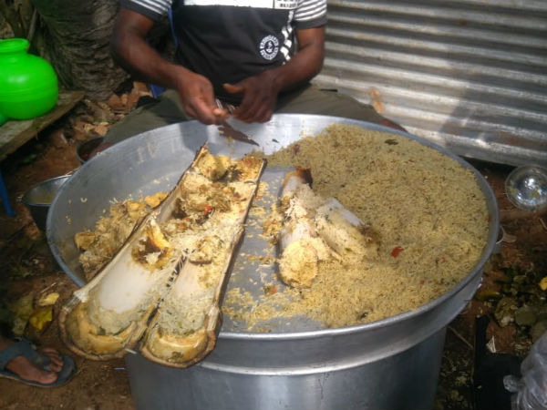 ಬಂಬೂ ಬಿರಿಯಾನಿ ಮಾಡುವುದು ಸುಲಭದ ಕೆಲಸವಲ್ಲ . ಬಿರಿಯಾನಿಗೆ ಬೇಕಾಗಿರುವ ಪದಾರ್ಥಗಳನ್ನು ಪಾತ್ರೆಗೆ ಹಾಕಿ ಫ್ರೈ ಮಾಡಿ, ಅಕ್ಕಿ ಸೇರಿಸುವುದು ಸಾಮಾನ್ಯ. ಆದರೆ ನಾವು ಮಾಡುವ ಬಿರಿಯಾನಿಗೆ ಮುಖ್ಯವಾಗಿ ಬಿದಿರಿನ ಬೊಂಬುಗಳು ಬೇಕು.