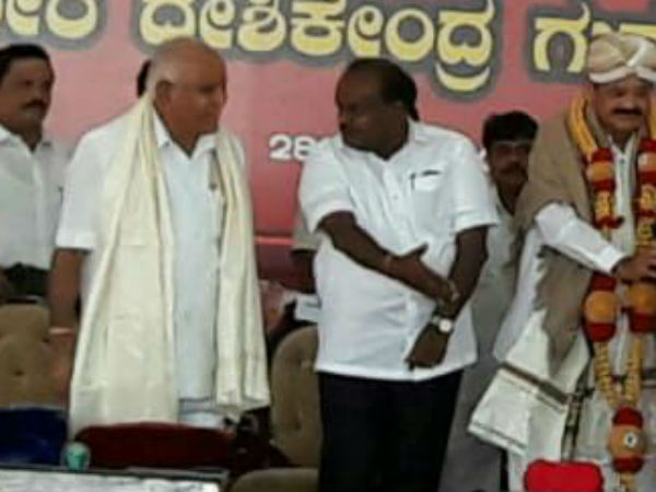 ಮೈಸೂರು ಜಿಲ್ಲೆಯ ನಂಜನಗೂಡು ತಾಲೂಕಿನ ಸುತ್ತೂರು ಮಠದಲ್ಲಿ ನಡೆದ ಕಾರ್ಯಕ್ರಮದಲ್ಲಿ ಪರಸ್ಪರ ನಾಯಕರು ಎದುರುಬದರಾದರು. ಈ ವೇಳೆ ವೇದಿಕೆಯಲ್ಲಿ ಕುಳಿತಿದ್ದ ಮಾಜಿ ಸಿಎಂ ಯಡಿಯೂರಪ್ಪ, ಹಾಲಿ ಸಿಎಂ ಎಚ್ ಡಿ ಕುಮಾರಸ್ವಾಮಿ ಬರುತ್ತಿದ್ದಂತೆ ಅವರನ್ನು ಬರಮಾಡಿಕೊಂಡು ತಮ್ಮ ಪಕ್ಕದಲ್ಲೇ ಕೂರಿಸಿಕೊಂಡ ಘಟನೆಯೂ ನಡೆಯಿತು.