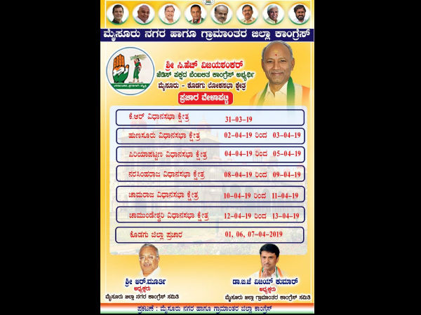 ಮೈಸೂರಿನ ಸ್ಥಳೀಯ ನಾಯಕರಾದ ಉಸ್ತುವಾರಿ ಸಚಿವ ಜಿ ಟಿ ದೇವೇಗೌಡ, ಪ್ರವಾಸೋದ್ಯಮ ಸಚಿವ ಸಾ.ರಾ.ಮಹೇಶ್ ಪೋಟೋಗೆ ಕೋಕ್ ನೀಡಲಾಗಿದ್ದು, ಕಾಂಗ್ರೆಸ್ನಿಂದ ರಾಹುಲ್ಗಾಂಧಿ, ಸಿದ್ದರಾಮಯ್ಯ ,ಪರಮೇಶ್ವರ್, ಗುಂಡೂರಾವ್, ಎಚ್.ಕೆ.ಪಾಟೀಲ್, ಈಶ್ವರ್ ಖಂಡ್ರೆ ಪೋಟೋಗಳನ್ನು ಮಾತ್ರ ಬಳಕೆ ಮಾಡಲಾಗಿದೆ.