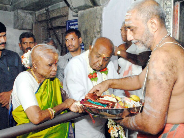 ಮೈಸೂರು, ಮಾರ್ಚ್ 2: ಮಾಜಿ ಪ್ರಧಾನಿ ದೇವೆಗೌಡ ಹಾಗೂ ಪತ್ನಿ ಚೆನ್ನಮ್ಮ ಗುರುವಾರ ನಂಜನಗೂಡಿನ ಶ್ರೀಕಂಠೇಶ್ವರ ದೇಗುಲಕ್ಕೆ ತೆರಳಿ, ಶ್ರೀಕಂಠೇಶ್ವರನಿಗೆ ವಿಶೇಷ ಪೂಜೆ ಸಲ್ಲಿಸಿದರು.