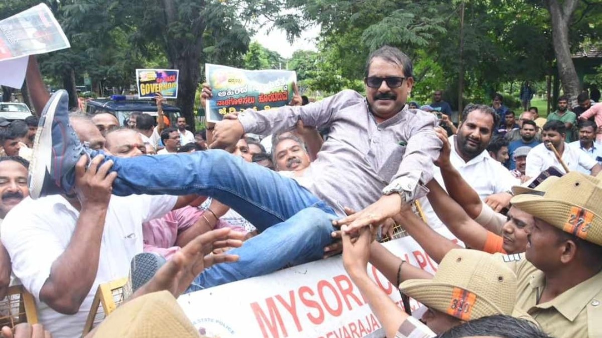 ಸಿಎಂ ಸಿದ್ದರಾಮಯ್ಯ ಬಿಜೆಪಿ-ಜೆಡಿಎಸ್ ರಾಜಕೀಯ ಹುನ್ನಾರದ ಪಾದಯಾತ್ರೆ ನಡೆಸುತ್ತಿದೆ ಎಂದು ಆರೋಪಿಸಿ ಕರ್ನಾಟಕ ರಾಜ್ಯ ಹಿಂದುಳಿದ ವರ್ಗಗಳ ಜಾಗೃತ ವೇದಿಕೆ ನೇತೃತ್ವದಲ್ಲಿ ಮೈಸೂರಿನ ಬಿಜೆಪಿ ಕಚೇರಿಗೆ ಮುತ್ತಿಗೆ ಹಾಕಲು ಪ್ರಯತ್ನಿಸಿದ್ದು, ಪೊಲೀಸರು ಅದನ್ನು ವಿಫಲಗೊಳಿಸಿದ್ದಾರೆ.