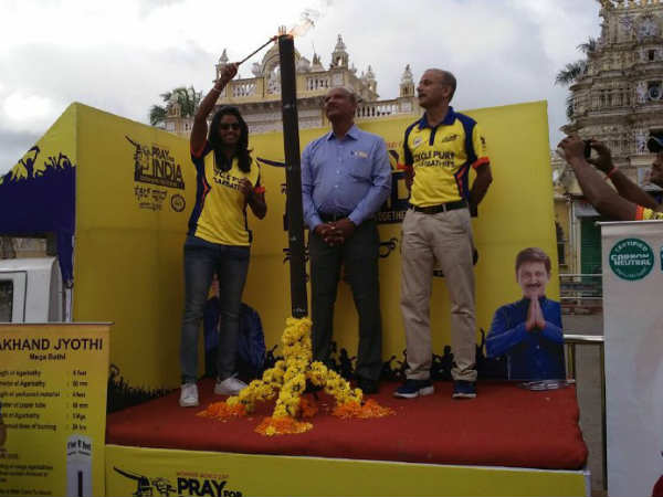 ಶುಕ್ರವಾರ ನಡೆಯಲಿರುವ ಇಂಗ್ಲೆಂಡ್ ವಿರುದ್ಧ ವಿಶ್ವಕಪ್ ಫೈನಲ್ ನಲ್ಲಿ ಭಾರತದ ಗೆಲುವಿಗೆ ನಗರದ ಅರಮನೆ ಹತ್ತಿರದ ಕೋಟೆ ಅಂಜನೇಯಸ್ವಾಮಿ ದೇವಸ್ಥಾನದ ಮುಂಭಾಗ ಕ್ರಿಕೆಟ್ ಅಭಿಮಾನಿಗಳು ಪ್ರಾರ್ಥಿನೆ ಮಾಡಿದರು. ಸೈಕಲ್ ಪ್ಯೂರ್ ಅಗರಬತ್ತೀಸ್ ಆಯೋಜಿಸಿದ್ದ ಅಭಿಯಾನಕ್ಕೆ ಕ್ರಿಕೆಟರ್ ವನಿತಾ ಅವರು ಆರು ಅಡಿ ಎತ್ತರದ ಅಖಂಡ ಅಗರಬತ್ತಿಯನ್ನು ಹಚ್ಚುವುದರ ಮೂಲಕ ಚಾಲನೆ ನೀಡಿದರು.