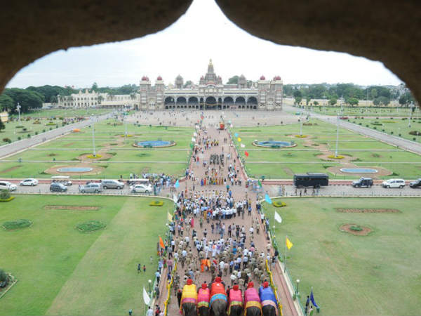 ಅರಮನೆ ಆನೆಬಾಗಿಲಿನಲ್ಲಿ ನಿಂತ ಗಜಪಡೆಗೆ ಅರಮನೆಯ ಮೇಲ್ಮಹಡಿಯಿಂದ ಪುಷ್ಪವೃಷ್ಟಿಗೈಯ್ಯಲಾಯಿತು. ಜಿಲ್ಲಾಧಿಕಾರಿ ಡಿ.ರಣದೀಪ್, ನಗರ ಪೊಲೀಸ್ ಕಮಿಷನರ್ ದಯಾನಂದ್, ಮೇಯರ್ ಭೈರಪ್ಪ ಸೇರಿದಂತೆ ಜನಪ್ರತಿನಿಧಿಗಳು, ಅಧಿಕಾರಿಗಳು ಇದ್ದರು.
