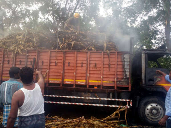ಮೈಸೂರು: ಮೇವು ಸಾಗಿಸುತ್ತಿದ್ದ ಲಾರಿಗೆ ಬೆಂಕಿ