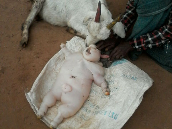 ಮೈಸೂರು, ಡಿ. 23 : ಮೈಸೂರು ಜಿಲ್ಲೆಯ ಎಚ್.ಡಿ.ಕೋಟೆ ತಾಲೂಕಿನಲ್ಲಿ ಅಚ್ಚರಿಯೊಂದು ನಡೆದಿದ್ದು, ಮೇಕೆಯೊಂದು ಎರಡು ಮನುಷ್ಯ ರೂಪದ ಮರಿಗಳಿಗೆ ಜನ್ಮ ನೀಡಿದೆ. ಮರಿಗಳು ಹುಟ್ಟಿದ ಕೆಲವೇ ಕ್ಷಣಗಳಲ್ಲಿ ಮೃತಪಟ್ಟಿವೆ. ಈ ಮರಿಗಳನ್ನು ದಸರಾ ವಸ್ತು ಪ್ರದರ್ಶನದಲ್ಲಿ ಇಡಲಾಗುತ್ತದೆ.