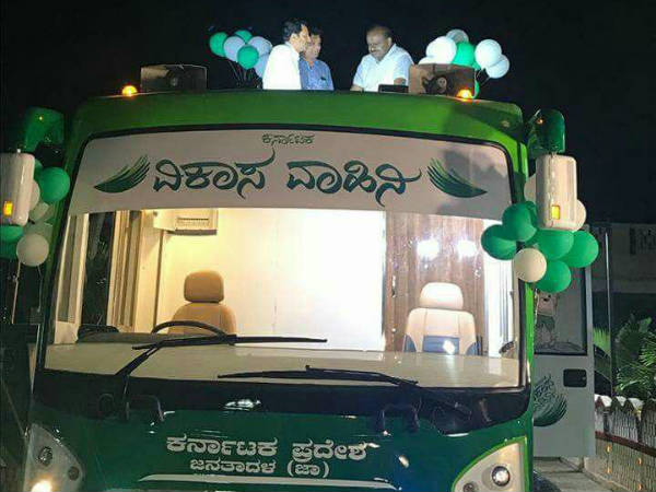 ಮುಖ್ಯಮಂತ್ರಿ ಸಿದ್ದರಾಮಯ್ಯ ತವರು ಜಿಲ್ಲೆ ಮೈಸೂರಿನಲ್ಲಿ ಜೆಡಿಎಸ್ ಶಕ್ತಿ ಪ್ರದರ್ಶನ ಮಾಡಲು ಸಿದ್ಧವಾಗಿದೆ. ಸಿದ್ದರಾಮಯ್ಯ ಅವರ ತವರು ಕ್ಷೇತ್ರ ಚಾಮುಂಡೇಶ್ವರಿಯಿಂದ ಕುಮಾರಸ್ವಾಮಿ ರಾಜ್ಯ ಪ್ರವಾಸ ಆರಂಭಿಸುತ್ತಿರುವುದು ವಿಶೇಷ. 'ಕರ್ನಾಟಕ ವಿಕಾಸ ವಾಹಿನಿ' ವಿಶೇಷ ಬಸ್ಸಿನಲ್ಲಿ ಕುಮಾರಸ್ವಾಮಿ ರಾಜ್ಯ ಪ್ರವಾಸ ಕೈಗೊಳ್ಳಲಿದ್ದಾರೆ.