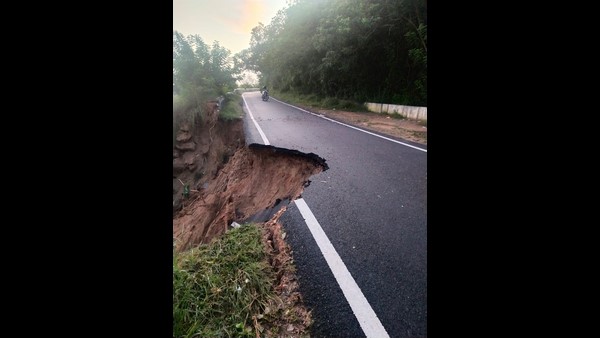 ಭಾರೀ ಮಳೆಯಿಂದಾಗಿ ನಂದಿ ದೇವಸ್ಥಾನ ಬಳಿಯ ರಸ್ತೆಯ ತಡೆಗೋಡೆ ಹಾಗೂ ರಸ್ತೆಯ ಕೆಲ ಭಾಗವೂ ಕುಸಿದಿದೆ. ಭೂ ಕುಸಿತದ ಹಿನ್ನೆಲೆಯಲ್ಲಿ ಎಚ್ಚೆತ್ತ ಪೊಲೀಸರು, ಆ ರಸ್ತೆಯಲ್ಲಿ ಯಾವುದೇ ವಾಹನಗಳು ಸಂಚರಿಸದಂತೆ ಕಟ್ಟುನಿಟ್ಟಿನ ಸೂಚನೆ ನೀಡಿದ್ದಾರೆ. ನಿನ್ನೆ ಸಂಜೆ ಈ ಘಟನೆ ನಡೆದಿದ್ದು, ಈ ವೇಳೆ ಯಾವುದೇ ವಾಹನಗಳ ಸಂಚಾರ ಇಲ್ಲದ ಪರಿಣಾಮ ಹೆಚ್ಚಿನ ಅನಾಹುತ ಸಂಭವಿಸಿಲ್ಲ.
