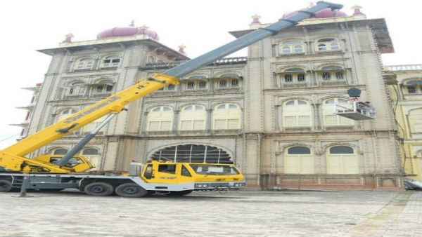 ದೀಪಾಲಂಕಾರಕ್ಕೆ ಸಜ್ಜಾಗುತ್ತಿದೆ ಅರಮನೆ; ಬಲ್ಬ್ ಬದಲಿಸುವ ಕಾರ್ಯಕ್ಕೆ ಚಾಲನೆ