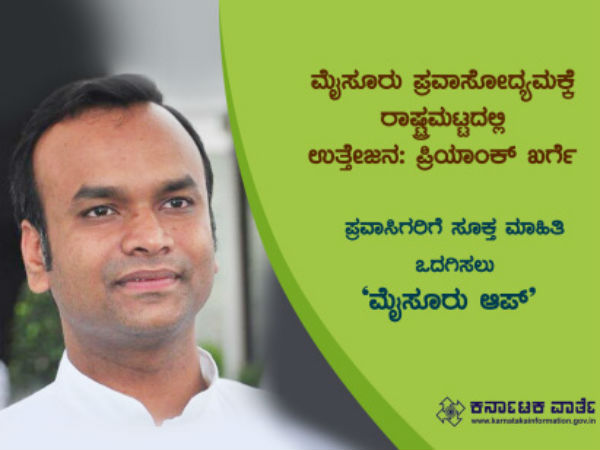 ಮೈಸೂರು, ಮೇ 08: ಕರ್ನಾಟಕ ಪ್ರವಾಸೋದ್ಯಮದಲ್ಲಿ ಬಹುಮುಖ್ಯ ಸ್ಥಾನ ಹೊಂದಿರುವ ಅರಮನೆ ನಗರಿ ಮೈಸೂರಿನ ಕುರಿತು ಪ್ರವಾಸಿಗರಿಗೆ ಸಮಗ್ರ ಮಾಹಿತಿ ನೀಡುವ ಮೈಸೂರು ಆಪ್ ವೊಂದನ್ನು ಬಿಡುಗಡೆ ಮಾಡುವ ಯೋಚನೆಯಿದೆ ಎಂದು ಪ್ರವಾಸೋದ್ಯಮ ಮತ್ತು ಐಟಿ ಬಿಟಿ ಸಚಿವ ಪ್ರಿಯಾಂಕ್ ಖರ್ಗೆ ಹೇಳಿದ್ದಾರೆ.