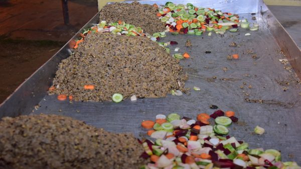 ತರಕಾರಿಗಳನ್ನ ಅರ್ಧ ಕೆಜಿ ಬೆಣ್ಣೆಯಲ್ಲಿ ಬೇಯಿಸಿ ಕೊಡಲಾಗುತ್ತದೆ. ಇದೆಲ್ಲ ಮುಗಿದ ನಂತರ ಮಧ್ಯಾಹ್ನದಿಂದ ಸಂಜೆಯವರೆಗೆ ಚುರುಮುರಿಯಂತೆ ಹಸಿರು ಸೊಪ್ಪು ತಿನ್ನುತ್ತಿರುತ್ತವೆ. ಸಂಜೆ ಭತ್ತದ ಹುಲ್ಲಿನಲ್ಲಿ ಕುಸುರೆಯ ಸುತ್ತಿ ಭತ್ತವನ್ನ ಬೇಯಿಸಿ ಹಾಕಿ, ಬೆಲ್ಲ ಹಿಂಡಿ, ತೆಂಗಿನ ಕಾಯಿ, ಈರುಳ್ಳಿ, ಬೇಯಿಸಿ ಒಟ್ಟಿಗೆ ಕೊಡಲಾಗುತ್ತದೆ. ಕನಿಷ್ಠ ಪ್ರತಿ ಆನೆಗೆ 12 ಕೆಜಿ ಭತ್ತ, 250 ಗ್ರಾಂ ಬೆಲ್ಲ, 2 ತೆಂಗಿನ ಕಾಯಿ, ಅರ್ಧ ಕೆ.ಜಿ ಬೆಣ್ಣೆ ಕೊಡಲಾಗುತ್ತದೆ. ಒಂದು ಆನೆ ಪ್ರತಿ ದಿನ ಮುನ್ನೂರರಿಂದ ಐನೂರು ಕೆಜಿಯಷ್ಟು ಹಸಿರು ಸೊಪ್ಪನ್ನು ತಿನ್ನುತ್ತದೆ. ಕಾಡಿನಿಂದ ಬಂದ ಆನೆಗಳು ಒಂದೇ ಬಾರಿಗೆ ಇದೆಲ್ಲವನ್ನು ತಿನ್ನಲಾರವು ಹೀಗಾಗಿ ಇವುಗಳಿಗೆ ಹುಳದ ಔಷಧಿ ಕೊಟ್ಟು ಹೊಟ್ಟೆಯನ್ನ ಸ್ವಚ್ಛಗೊಳಿಸಲಾಗುತ್ತದೆ. ಬಳಿಕ ಆನೆಗಳಿಗೆ ಚೆನ್ನಾಗಿ ಹೊಟ್ಟೆ ಹಸಿದು ಆಹಾರಗಳನ್ನು ಸೇವಿಸಲು ಆರಂಭಿಸುತ್ತವೆ.