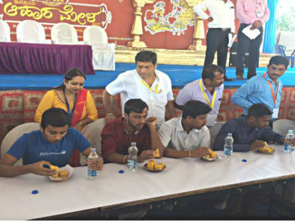 ಮೈಸೂರು, ಸೆಪ್ಟೆಂಬರ್ 23 : ಬಾಯಿಯಲ್ಲಿ ನೀರೂರಿಸುವ ಮೈಸೂರು ಪಾಕ್ ತಿಂದ ಕಾಲೇಜು ಯುವಕರು ನಗದು ಬಹುಮಾನ ಸಹ ಪಡೆದರು. ದಸರಾ ನವರಾತ್ರಿಯ ಅಂಗವಾಗಿ ಜೆ.ಕೆ.ಮೈದಾನದ ಆಹಾರ ಮೇಳದಲ್ಲಿ ಕಾಲೇಜು ವಿದ್ಯಾರ್ಥಿಗಳಿಗಾಗಿ ಆಯೋಜಿಸಿದ್ದ ಮೈಸೂರು ಪಾಕ್ ತಿನ್ನುವ ಸ್ಪರ್ಧೆಗೆ ಆಭೂತಪೂರ್ವ ಸ್ಪಂದನೆ ದೊರೆಯಿತು.