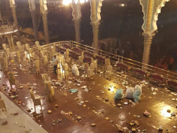 ಐತಿಹಾಸಿಕ ಮೈಸೂರು ಅರಮನೆಯನ್ನು ದಸರಾ ಸಂದರ್ಭದಲ್ಲಿ ಈ ರೀತಿ ಹಾಳು ಮಾಡಿರುವ ಸಾರ್ವಜನಿಕರ ನಡವಳಿಕೆಗೆ ಅವರು ತೀವ್ರ ಅಸಮಾಧಾನ ವ್ಯಕ್ತಪಡಿಸಿದ್ದಾರೆ. ಅರಮನೆಯ ದರ್ಬಾರ್ ಹಾಲ್ ತುಂಬೆಲ್ಲಾ ಕಸಬಿಸಾಡಿರುವುದನ್ನು ಮೇಲಿನ ಚಿತ್ರಗಳಲ್ಲಿ ನೋಡಬಹುದಾಗಿದೆ.