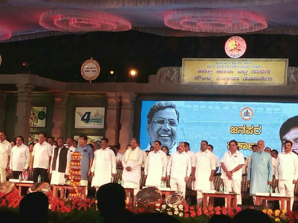 ಮೈಸೂರು, ಜೂನ್ 3: ರಾಜ್ಯ ಸರ್ಕಾರ 4 ವರ್ಷ ಪೂರೈಸಿದ ಹಿನ್ನೆಲೆಯಲ್ಲಿ ಮೈಸೂರಿನ ಮಹಾರಾಜ ಕಾಲೇಜು ಮೈದಾನದಲ್ಲಿ ಆಯೋಜಿಸಿರುವ 'ಕೊಟ್ಟ ಮಾತು ದಿಟ್ಟ ಸಾಧನೆ ಮತ್ತು ಸಾಧನಾ ಸಮಾವೇಶ'ಕ್ಕೆ ದೀಪ ಬೆಳಗಿಸುವ ಮೂಲಕ ಸಿದ್ದರಾಮಯ್ಯ ಚಾಲನೆ ನೀಡಿದರು.
