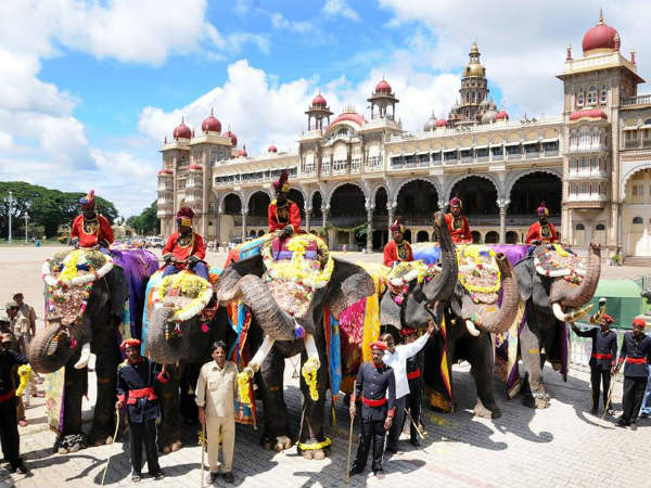 ಬುಧವಾರ ದಸರಾ ಮಹೋತ್ಸವದಲ್ಲಿ ಪಾಲ್ಗೊಳ್ಳುವ ಗಜಪಡೆಯ ಮೊದಲನೇ ತಂಡದ 6 ಆನೆಗಳನ್ನು ಮೈಸೂರು ಜಿಲ್ಲಾ ಉಸ್ತುವಾರಿ ಸಚಿವರಾದ ವಿ.ಶ್ರೀನಿವಾಸ್ ಪ್ರಸಾದ್ ಅವರು ಅಂಬವಿಲಾಸ ಅರಮನೆಯ ಜಯಮಾರ್ತಾಂಡ ದ್ವಾರದಲ್ಲಿ ಸಾಂಪ್ರದಾಯಕವಾಗಿ ಸ್ವಾಗತಿಸಿದರು. [ಮೈಸೂರು ದಸರಾ ಆನೆಗಳಿಗೆ 35 ಲಕ್ಷದ ವಿಮೆ]