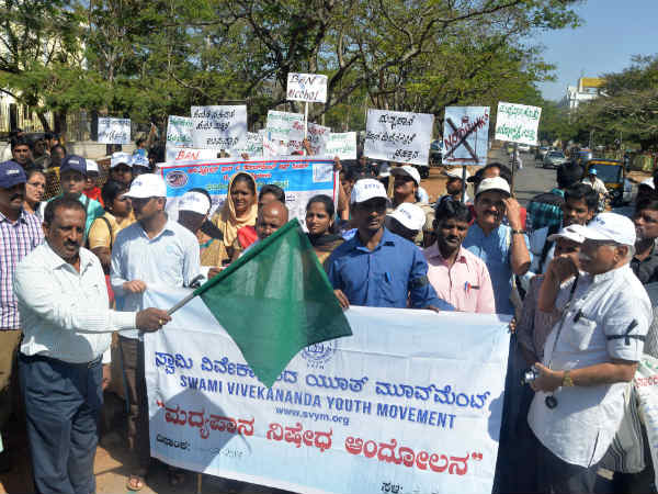 ಮದ್ಯಪಾನ ನಿಷೇಧಿಸುವಂತೆ ಒತ್ತಾಯಿಸಿ ಮೈಸೂರಿನಲ್ಲಿ ಪ್ರತಿಭಟನೆ