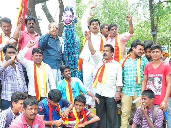 ಕಾವೇರಿ ಮತ್ತು ಕಬಿನಿ ಜಲಾಶಯಗಳಲ್ಲಿ ರಾಜ್ಯದ ಜನತೆಗೆ ಕುಡಿಯಲು ನೀರಿಲ್ಲ. ಆದರೆ ಇಲ್ಲಿನ ಸ್ಥಿತಿ ಅರಿಯದೆ ಸುಪ್ರೀಂ ಕೋರ್ಟ್ ಮೂಲಕ ನೀರು ಕೇಳುವುದು ಅಮಾನವೀಯ ವರ್ತನೆ ಎಂದು ಕಿಡಿಕಾರಿರುವ ಮೈಸೂರು ಜಿಲ್ಲಾ ಕನ್ನಡ ಚಳವಳಿಗಾರರು ಈ ಸಂಬಂಧ ನಗರದ ಕಾಡಾ ಕಚೇರಿ ಬಳಿ ಪ್ರತಿಭಟನೆ ನಡೆಸಿ, ಜಯಲಲಿತಾ ಅವರ ಪ್ರತಿಕೃತಿಯನ್ನು ನೇಣಿಗೆ ಹಾಕಿ ಆಕ್ರೋಶ ಹೊರಹಾಕಿದ್ದಾರೆ.[ತಮಿಳ್ನಾಡಿಗೆ ಕಾವೇರಿ ಬಿಡಲೇಬೇಕು : ಸುಪ್ರೀಂಕೋರ್ಟ್ ಆಜ್ಞೆ!]