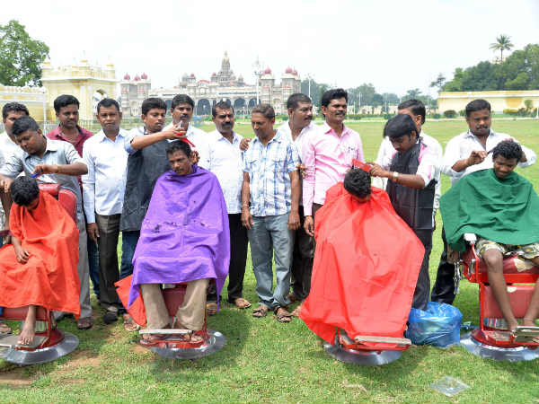 ವಿಜಯದಶಮಿಯ ಜಂಬೂಸವಾರಿ ಮೆರವಣಿಗೆಯಲ್ಲಿ ಭಾಗಿಯಾಗುವ ಸಲುವಾಗಿ ಅರಮನೆಯ ಆವರಣದಲ್ಲಿ ಬೀಡುಬಿಟ್ಟಿರುವ ಗಜಪಡೆಯ ಮಾವುತರು, ಕಾವಾಡಿಗಳು ಹಾಗೂ ಇವರ ಮಕ್ಕಳಿಗೆ ಶುಕ್ರವಾರ ಉಚಿತ ಕ್ಷೌರದ ಭಾಗ್ಯ ಲಭಿಸಿತು. ಮೈಸೂರು ಜಿಲ್ಲೆ ಹುಣಸೂರು ತಾಲೂಕಿನ ಬಿಳಿಕೆರೆ ಗ್ರಾಮದ ಸವಿತ ಸಮಾಜದ ವತಿಯಿಂದ ಅರಮನೆ ಆವರಣದಲ್ಲಿ ಉಚಿತ ಕ್ಷೌರ ಮಾಡುವ ಕಾರ್ಯಕ್ರಮ ಆಯೋಜಿಸಲಾಗಿತ್ತು.