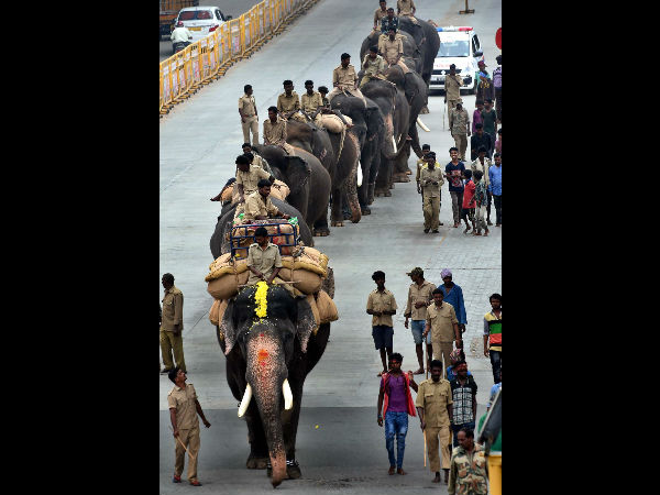 ಬೆಳಿಗ್ಗೆ ಅರ್ಜುನನ ನೇತೃತ್ವದಲ್ಲಿ 15 ಆನೆಗಳಿಗೆ ತಾಲೀಮು ಹಮ್ಮಿಕೊಳ್ಳಲಾಯಿತು.ಅರಮನೆ ಆವರಣದಿಂದ ಹೊರಟ ಗಜಪಡೆ ಸಯ್ಯಾಜಿರಾವ್ ರಸ್ತೆಯಲ್ಲಿ ಸಾಗಿ ಬನ್ನಿ ಮಂಟಪ ತಲುಪಿತು. ಅಲ್ಲಿ ಕೆಲ ನಿಮಿಷ ವಿಶ್ರಾಂತಿ ನೀಡಿ ವಾಪಸ್ ಅರಮನೆಗೆ ಕರೆತಲಾಯಿತು.