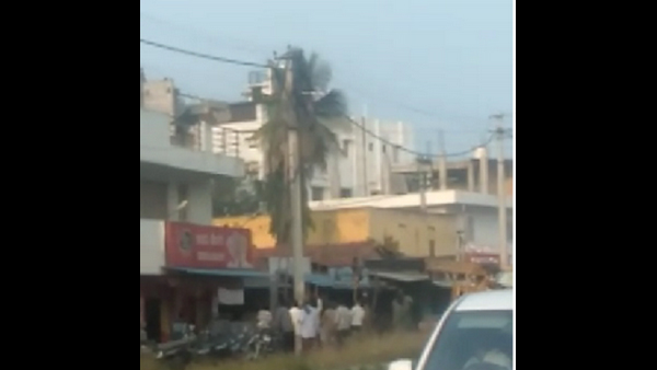 ನೌಕರರು ಕಂಬದಿಂದ ಬೀಳುತ್ತಿದ್ದ ದೃಶ್ಯವನ್ನು ಗ್ರಾಮಸ್ಥರು ಮೊಬೈಲ್ ನಲ್ಲಿ ಸೆರೆಹಿಡಿದಿದ್ದರು.