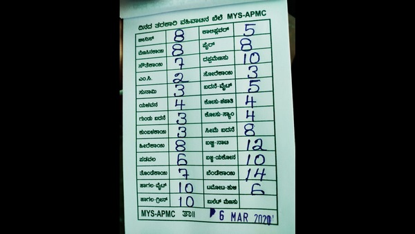 ಮೈಸೂರು, ಮಾರ್ಚ್ 9: ಕೊರೊನಾ ವೈರಸ್ ಮೈಸೂರು ಎಪಿಎಂಸಿಯಲ್ಲಿನ ತರಕಾರಿ ಮಾರುಕಟ್ಟೆಯ ಮೇಲೂ ಪರಿಣಾಮ ಬೀರಿದೆ. ಕೊರೊನಾ ವೈರಸ್ ನಿಂದಾಗಿ ತರಕಾರಿಗಳ ಬೆಲೆ ದಿನದಿಂದ ದಿನಕ್ಕೆ ಕುಸಿಯುತ್ತಿದೆ.