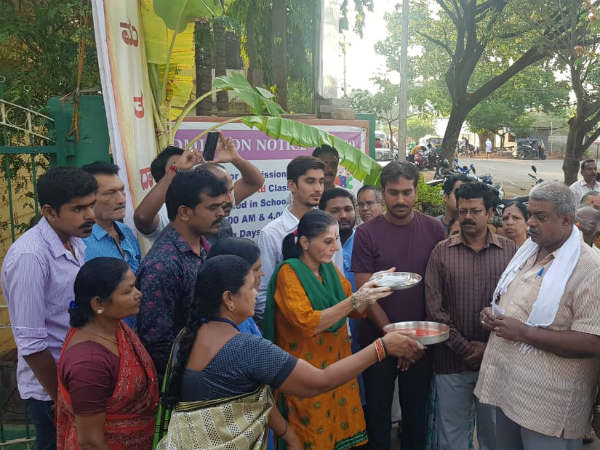 ಮತಗಟ್ಟೆಗೆ ಮೊದಲು ಬಂದ ಮತದಾರರಿಗೆ ಆರತಿ ಬೆಳಗಿ ಸ್ವಾಗತಿಸಿದ ಚುನಾವಣಾ ಸಿಬ್ಬಂದಿ