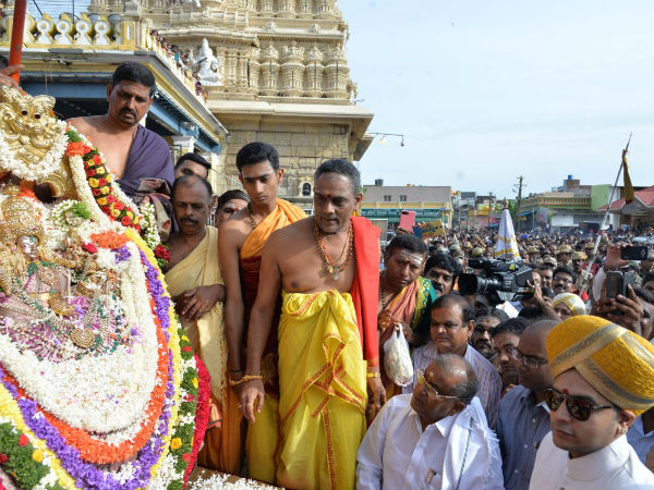 ಸುಸೂತ್ರವಾಗಿ ದಸರಾ ಆಚರಣೆ ನಂತರ ಚಾಮುಂಡಿಗೆ ಪೂಜೆ ಸಲ್ಲಿಸುವ ಸಲುವಾಗಿ ನಡೆಯುವ ರಥೋತ್ಸವದಲ್ಲಿ ಯದುವಂಶದ ಮಹಾರಾಜ ಯದುವೀರ ಕೃಷ್ಣದತ್ತ ಚಾಮರಾಜ ಒಡೆಯರ್, ರಾಜಮಾತೆ ಪ್ರಮೋದಾದೇವಿ ಒಡೆಯರ್ ಪಾಲ್ಗೊಂಡಿದ್ದರು. ಮುಂಜಾನೆಯೇ ಬೆಟ್ಟಕ್ಕೆ ಆಗಮಿಸಿ ತಾಯಿಗೆ ಪೂಜೆ ಸಲ್ಲಿಸಿದ್ದು, ಬೆಳಿಗ್ಗೆ 8.05 ರ ತುಲಾ ಲಗ್ನದಲ್ಲಿ ಮಹಾರಥೋತ್ಸವಕ್ಕೆ ಚಾಲನೆ ನೀಡಲಾಯಿತು.