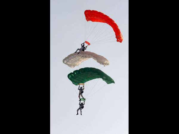 ಆಕಾಶ್ ಗಂಗಾ ಸ್ಕೈ ಡೈವರ್ಸ್ ತ್ರಿವರ್ಣ ಧ್ವಜ ಹಿಡಿದು ಆಗಸದಿಂದ ಕೆಳಕ್ಕೆ ಹಾರುವ ಮೂಲಕ ವೈಮಾನಿಕ ಪ್ರದರ್ಶನಕ್ಕೆ ಚಾಲನೆ ನೀಡಲಾಗಿದೆ. ಸೂರ್ಯ ಕಿರಣ್ ತಂಡ (SKAT) ಈ ಬಾರಿ ವಾರ್ಷಿಕೋತ್ಸವದ ಪ್ರಮುಖ ಆಕರ್ಷಣೆಯಾಗಲಿದೆ.