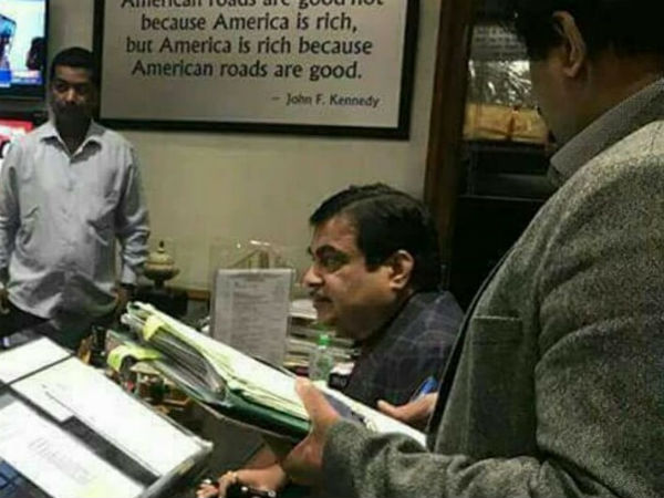 'ಅಮೆರಿಕ ಶ್ರೀಮಂತ ರಾಷ್ಟ್ರ ಎಂಬ ಕಾರಣಕ್ಕೆ ಅದರ ರಸ್ತೆಗಳು ಚೆನ್ನಾಗಿವೆ ಎಂಬುದು ಸುಳ್ಳು, ಅಮೆರಿಕದ ರಸ್ತೆಗಳು ಚೆನ್ನಾಗಿವೆ ಹಾಗಾಗಿ ಅಮೆರಿಕ ಶ್ರೀಮಂತ ರಾಷ್ಟ್ರವಾಗಿದೆ' ಎಂಬ ಅಮೆರಿಕದ ಮಾಜಿ ಅಧ್ಯಕ್ಷ ಜಾನ್ ಎಫ್.ಕೆನಡಿ ಅವರ ಪ್ರಖ್ಯಾತ ಮಾತೊಂದನ್ನು ದೊಡ್ಡ ಅಕ್ಷರದಲ್ಲಿ ಬರೆಸಿ ತಮ್ಮ ಕಚೇರಿಯ ಗೋಡೆಯ ಮೇಲೆ ಹಾಕಿಸಿಕೊಂಡಿದ್ದಾರೆ ಸಚಿವ ನಿತಿನ್ ಗಡ್ಕರಿ.