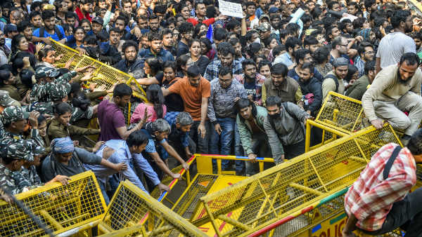 ದೆಹಲಿಯ ಜವಾಹರ್ ಲಾಲ್ ನೆಹರೂ ವಿಶ್ವ ವಿದ್ಯಾಲಯ ಕ್ಯಾಂಪಸ್ ಬಳಿ ವಿದ್ಯಾರ್ಥಿಗಳ ತೀವ್ರ ಸ್ವರೂಪ ಪಡೆದುಕೊಂಡಿದೆ. ಕ್ಯಾಂಪಸ್ ಸುತ್ತ ಪೊಲೀಸರು ಬಿಗಿ ಭದ್ರತೆ ಒದಗಿಸಿದ್ದು, ತುರ್ತು ಪರಿಸ್ಥಿತಿ ಘೋಷಿಸಲಾಗಿದೆ.