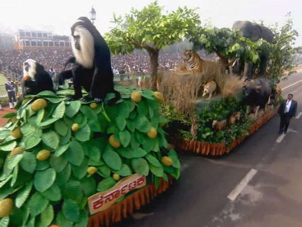 ನವ ದೆಹಲಿ, ಜನವರಿ 26: ಗಣರಾಜ್ಯೋತ್ಸವ ಪೆರೇಡ್ನಲ್ಲಿ ಕರ್ನಾಟಕದ ಅರಣ್ಯ ಸಂಪತ್ತನ್ನು ಪ್ರತಿಬಿಂಬಿಸುವ ಸ್ತಬ್ಧಚಿತ್ರ ಪ್ರೇಕ್ಷಕರ ಗಮನ ಸೆಳೆಯಿತು.
