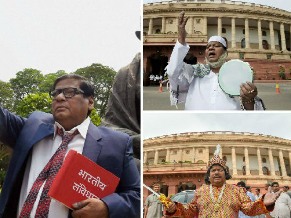 ಸಂಸತ್ತಿನಲ್ಲಿ ನಡೆಯುತ್ತಿರುವ ಮುಂಗಾರು ಅಧಿವೇಶನಕ್ಕೆ ದಿನವೂ ತರಹೇವಾರಿ ವೇಷದಲ್ಲಿ ಬಂದು ಸರ್ಕಾರದ ಗಮನ ಸೆಳೆಯುವ ಪ್ರಯತ್ನ ಮಾಡುತ್ತಿದ್ದಾರೆ. ರೈತ, ಮುಸ್ಲಿಂ, ವಿದ್ಯಾರ್ಥಿ, ಸಂತ, ಡಾ.ಬಿ.ಆರ್.ಅಂಬೇಡ್ಕರ್... ಹೀಗೆ ಪ್ರತಿದಿನ ಒಬ್ಬೊಬ್ಬರ ವೇಷದಲ್ಲಿ ಬಂದು ವಿನೂತನ ರೀತಿಯಲ್ಲಿ ಪ್ರತಿಭಟನೆ ನಡೆಸುತ್ತಿದ್ದಾರೆ.