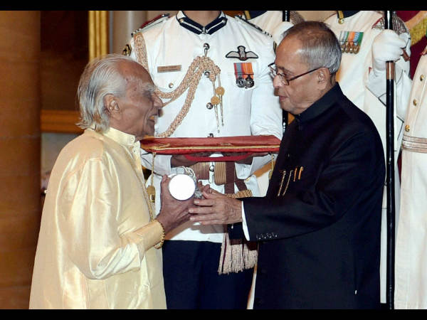 ರಾಷ್ಟ್ರಪತಿ ಪ್ರಣಬ್ ಮುಖರ್ಜಿ ಡ್ರಂ ವಾದಕ Musafir Ram Bhardwaj ಅವರಿಗೆ ಪ್ರದ್ಮಶ್ರೀ ಪ್ರಶಸ್ತಿ ನೀಡಿ ಗೌರವಿಸಿದರು.