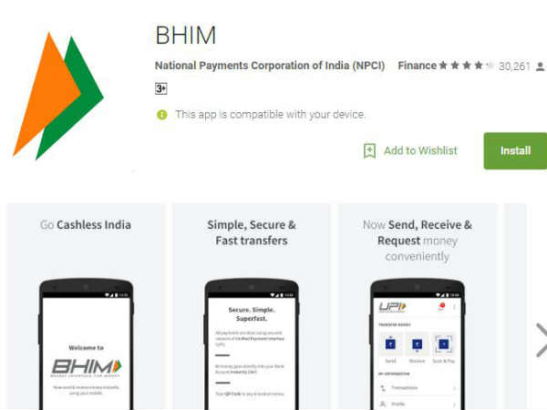 ನಗದು ರಹಿತ, ಆಧಾರ್ ಸಹಿತ ಭೀಮ್ ಎಂಬ ಆ್ಯಪ್ ಅನ್ನು ಪ್ರಧಾನಿ ನರೇಂದ್ರ ಮೋದಿ ಅವರು ಬಿಡುಗಡೆಗೊಳಿಸಿದ್ದು, ಇದರ ಮೂಲಕ ಜನರು ತಮ್ಮ ಬ್ಯಾಂಕಿನ ಖಾತೆಯ ಹಣವನ್ನು ವರ್ಗಾವಣೆ, ಜಮೆ ಮಾಡಬಹುದು.