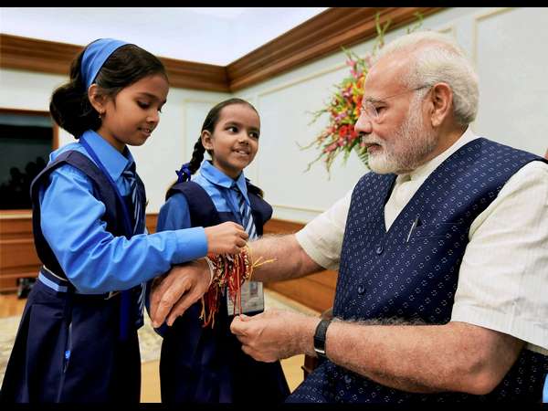ನವದೆಹಲಿಯಲ್ಲಿ ಆಗಸ್ಟ್ 7 ರಂದು ಮೋದಿಯವರಿಗೆ ಪುಟ್ಟ ಪುಟ್ಟ ಮಕ್ಕಳು ರಾಖಿ ಕಟ್ಟಿ ಸಂಭ್ರಮಿಸಿದರು. ಪ್ರಧಾನಿ ಮೋದಿ ಸಹ ತಮ್ಮ ದಿನನಿತ್ಯದ ಬ್ಯುಸಿ ಶೆಡ್ಯೂಲ್ ನಡುವಲ್ಲೂ ಈ ಚಿಣ್ಣರೊಂದಿಗೆ ರಾಖಿ ಹಬ್ಬದ ಸಂಭ್ರಮ ಅನುಭವಿಸಿದರು. ಭಾರತದ ಭವಿಷ್ಯದ ನಾಗರಿಕರಿಗೆ ಶುಭಹಾರೈಸಿ, ಆಶೀರ್ವದಿಸಿದರು.