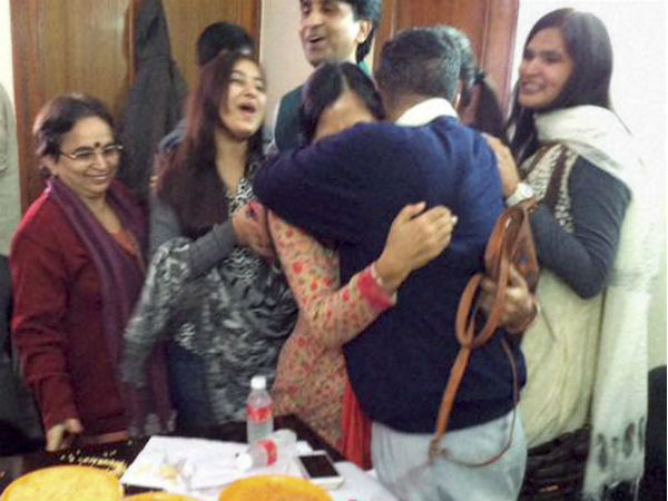 ತಮ್ಮ ಪ್ರತಿ ಹೋರಾಟದಲ್ಲೂ ಬೆನ್ನೆಲುಬಾಗಿ ನಿಂತು ಪ್ರೋತ್ಸಾಹಿಸಿದ ಪತ್ನಿಗೆ ಅರವಿಂದ ಕೇಜ್ರಿವಾಲ್ ಟ್ವಿಟ್ಟರ್ ಮೂಲಕ ಕೃತಜ್ಞತೆ ಹೇಳಿದ್ದಾರೆ. ಚುನಾವಣೆಯಲ್ಲಿ ಗೆದ್ದ ತಕ್ಷಣ ಪತ್ನಿಯನ್ನು ಎಲ್ಲರೆದುರು ಬಿಗಿದಪ್ಪಿ ಪ್ರೀತಿ ವ್ಯಕ್ತಪಡಿಸಿದ್ದಾರೆ. ಪತ್ನಿ ಇಲ್ಲದಿದ್ದರೆ ನನ್ನಿಂದ ಏನನ್ನೂ ಸಾಧಿಸುವುದು ಸಾಧ್ಯವಿರಲಿಲ್ಲ ಎಂದಿದ್ದಾರೆ. [ಮೋದಿ, ಷಾ ಮಾಡಿದ ಯಡವಟ್ಟು]