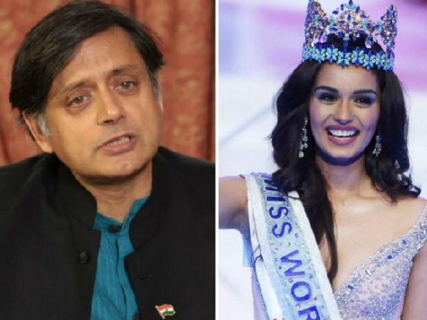 ಮಾನುಷಿ ಚಿಲ್ಲರ್ ಅವರನ್ನು ವಿಶ್ವ ಸುಂದರಿ ಎಂದು ಘೋಷಿಸುತ್ತಿದ್ದಂತೆಯೇ ಅವರನ್ನು ಅಭಿನಂದಿಸುವ ಬದಲು ಶಶಿ ತರೂರ್ ವಿವಾದಾತ್ಮಕವಾಗಿ ಟ್ವೀಟ್ ಮಾಡಿದ್ದರು. "ನಮ್ಮ ನೋಟುಗಳನ್ನು ಅಪನಗದೀಕರಣಗೊಳಿಸುವುದು ಎಂಥ ತಪ್ಪಿನ ಕೆಲಸ! ನಮ್ಮ ಕರೆನ್ಸಿಗೆ ಜಾಗತಿಕ ಮಟ್ಟದಲ್ಲಿ ಬೆಲೆ ಇದೆ. ನೋಡಿ ಚಿಲ್ಲರೆ(ಚಿಲ್ಲರ್) ಕೂಡ ವಿಶ್ವಸುಂದರಿಯಾಗಬಹುದು" ಎಂದು ವ್ಯಂಗ್ಯವಾಗಿ ಟ್ವೀಟ್ ಮಾಡಿದ್ದರು.