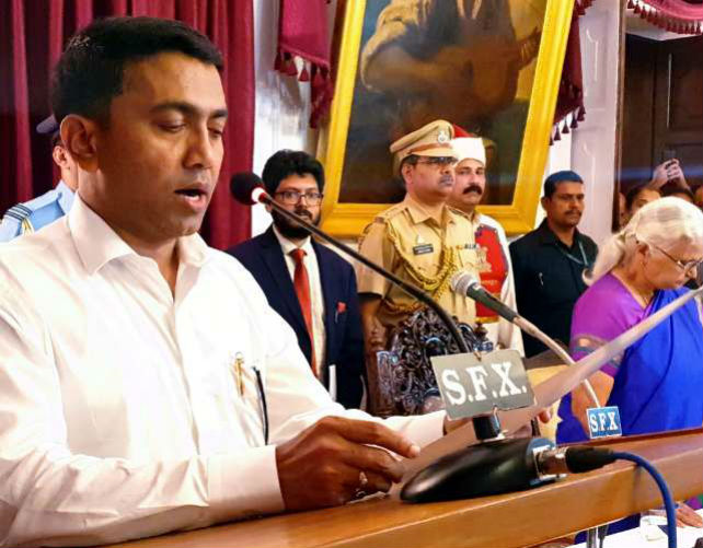ಪಣಜಿ, ಮಾರ್ಚ್ 19: ಗೋವಾದ ನೂತನ ಮುಖ್ಯಮಂತ್ರಿಯಾಗಿ ಆಯ್ಕೆಯಾದ ಪ್ರಮೋದ್ ಸಾವಂತ್ ಅವರು ಮಂಗಳವಾರ ಮಧ್ಯರಾತ್ರಿ ಪ್ರಮಾಣವಚನ ಸ್ವೀಕರಿಸಿದರು.