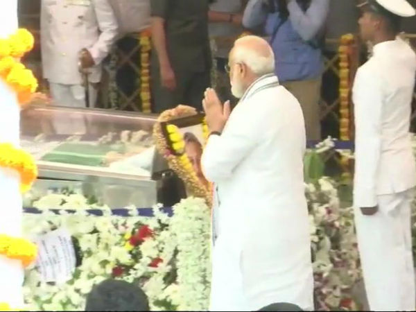 Panaji: Prime Minister Narendra Modi and Defence Minister Nirmala Sitharaman pay last respects to Goa CM #ManoharParrikar pic.twitter.com/aNUC7nEJPm
